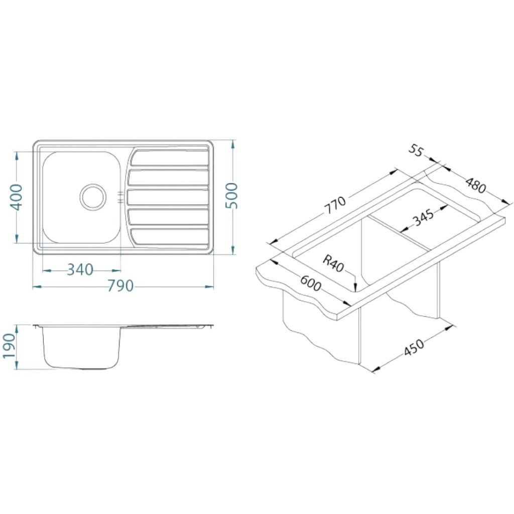 - Rozmery drezu (Š x H): Približne 400 x 500 mm