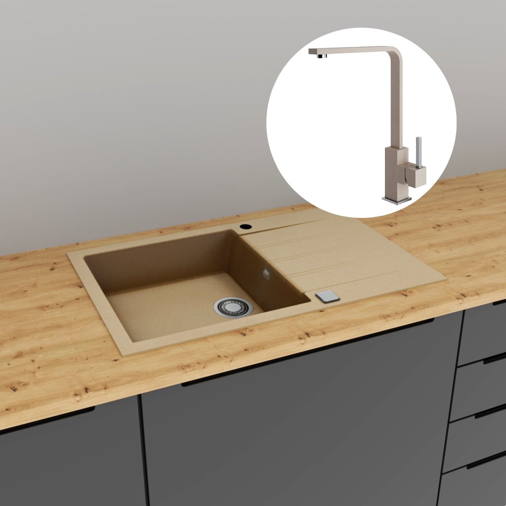 Praktická a elegantná kombinácia kuchynskej batérie Afra a granulátového drezu Cadit 40 ponúka funkčné riešenie pre moderné kuchyne. Vďaka premyslenému dizajnu, kvalitnému spracovaniu a odolnosti voči každodennému používaniu je tento set skvelou voľbou pre domácnosti aj náročnejšie kuchynské prostredie.