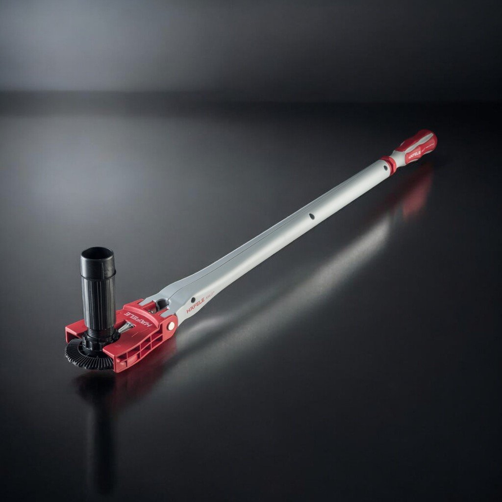 Ergonomický a efektívny nastavovací nástroj pre systém rektifikácie soklov AXILO™. Tento nástroj umožňuje presné a jednoduché nastavenie výšky v celej oblasti sokla, vrátane ťažko prístupných miest, ako sú rohové skrinky. Je ideálny pre profesionálov, ktorí hľadajú rýchle a pohodlné riešenie.