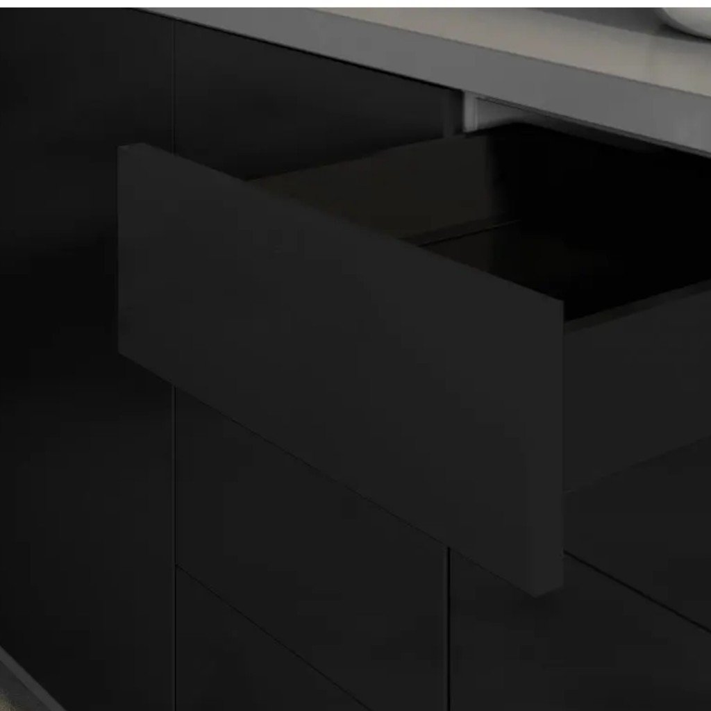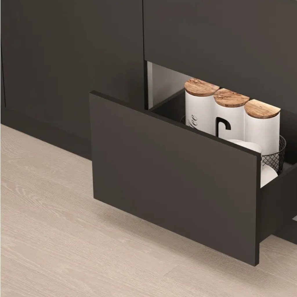 Zásuvka AXISPRO-A v čiernej farbe je ideálna pre moderné kuchyne, kde je potrebná vysoká funkčnosť a štýlový vzhľad s hladkým otváraním a bezúchytným dizajnom.