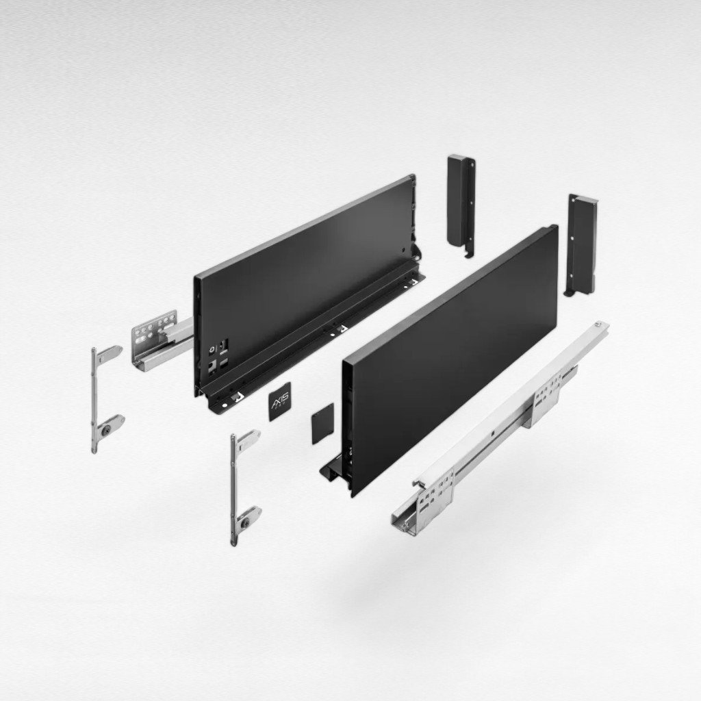Zásuvka AXIS PRO s vysokým profilom je ideálna pre všetky nábytkové zostavy, kde je požadovaná vysoká odolnosť, tichý chod a efektívne využitie priestoru.
