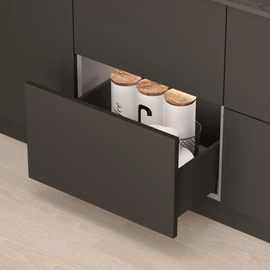 Táto čierna verzia AXISPRO-C kombinuje elegantný dizajn s jednoduchým a tichým otváraním, ideálna voľba pre moderné kuchyne s dôrazom na komfort a štýl.