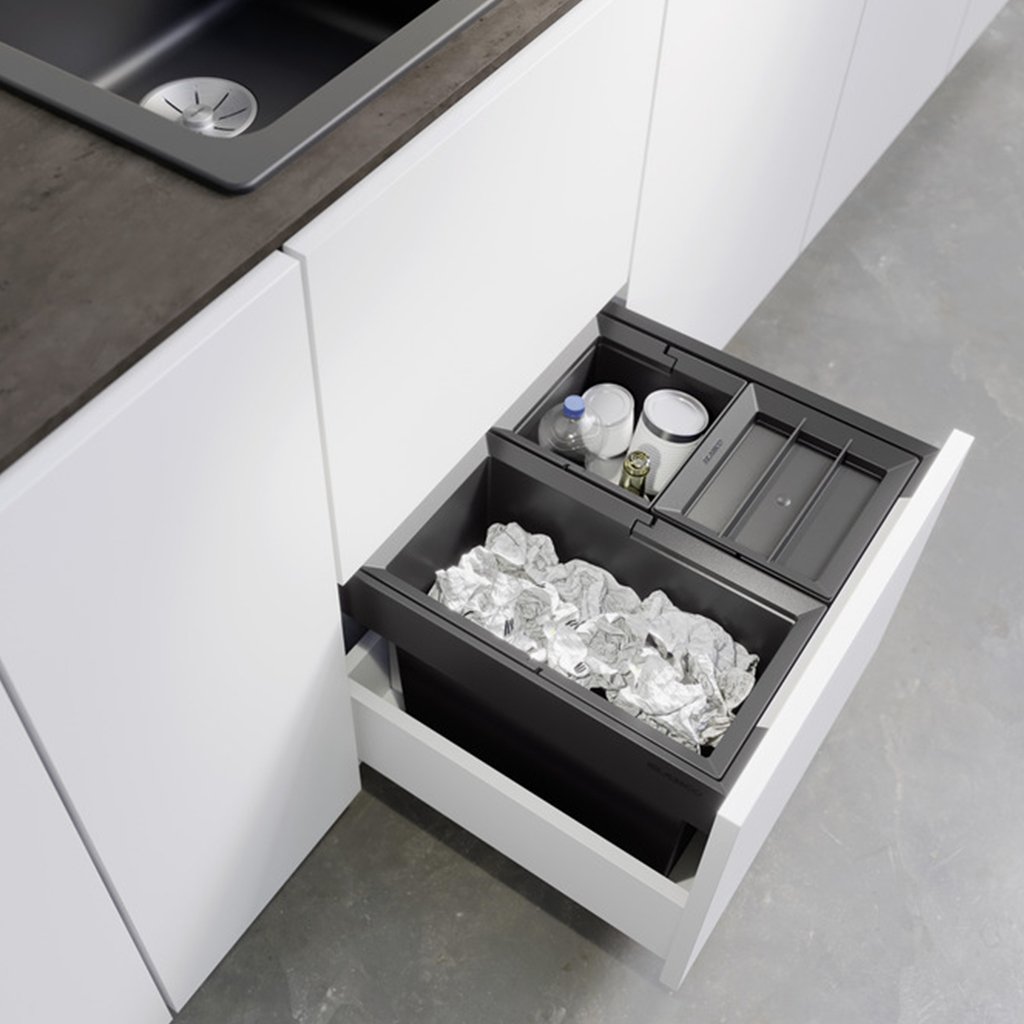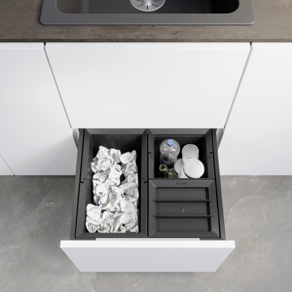 Elegantný a praktický smetný kôš BLANCO FLEXON II LOW 50/3 je ideálnym riešením pre triedenie odpadu v moderných kuchyniach. Vďaka svojmu kompaktnému prevedeniu sa hodí do skriniek so spodným výsuvom a zaručuje efektívne využitie priestoru aj pri menšej výške zásuvky.