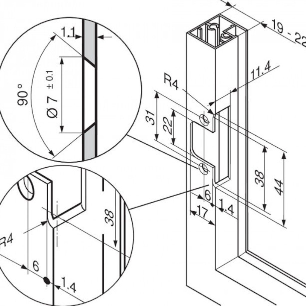 Montážna platnička BLUM AVENTOS HF adaptér na úzky hliníkový rám ľavý 175H5B00 je ideálnym riešením pre skrinky s úzkymi hliníkovými rámami. Tento adaptér je súčasťou systému CLIP, čo zabezpečuje jednoduchú a spoľahlivú montáž. Vyrobený z kvalitného poniklovaného zinku, poskytuje vysokú odolnosť a trvanlivosť. Je určený na upevnenie teleskopického ramena a má spodnú časť s krycím sklíčkom pre vŕtanie hmoždinky.