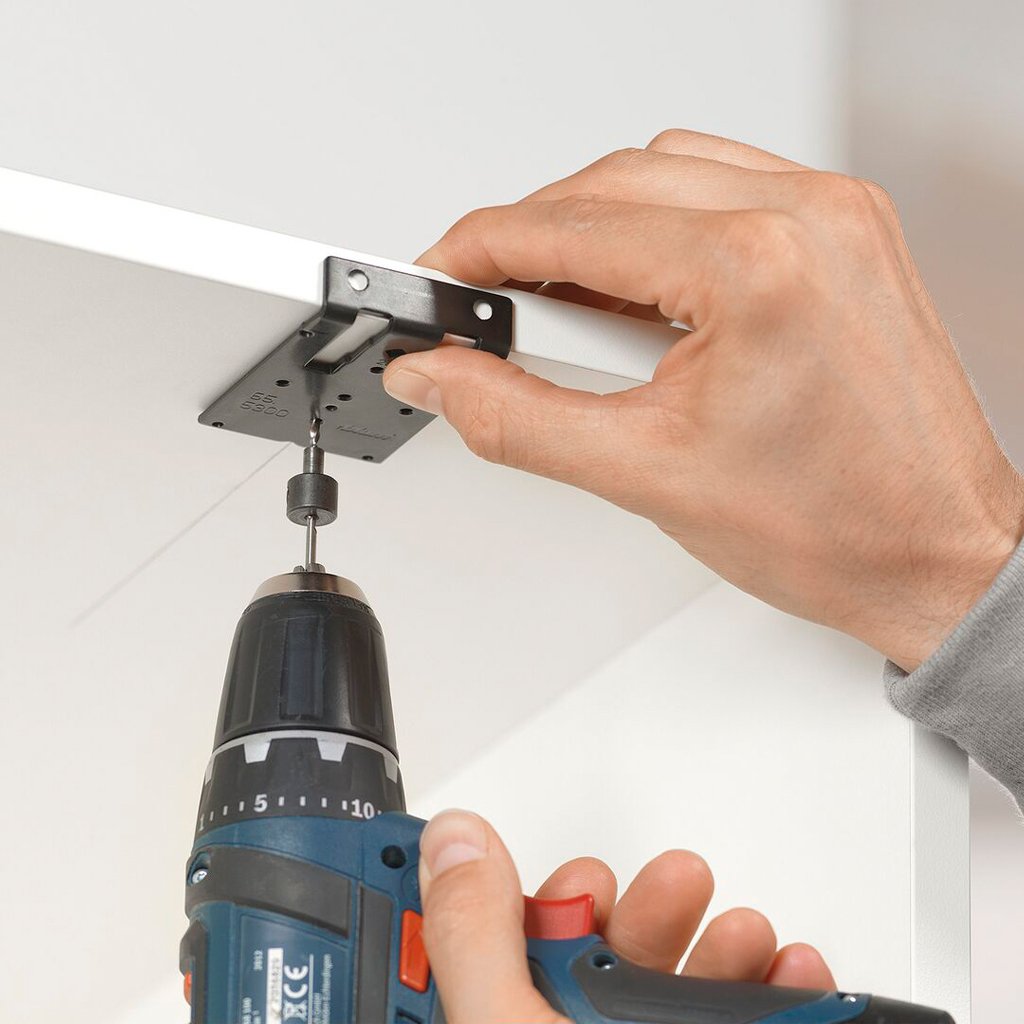 BLUM dorazový uholník je praktická montážna pomôcka určená na presné vŕtanie miest pre upevnenie montážnych podložiek a na prenášanie rozmerov z dverí na korpus. Vďaka nemu môžete jednoducho a presne pripraviť montážne otvory pre systémy AVENTOS HF, BLUMOTION, montážne platničky alebo TIP-ON.