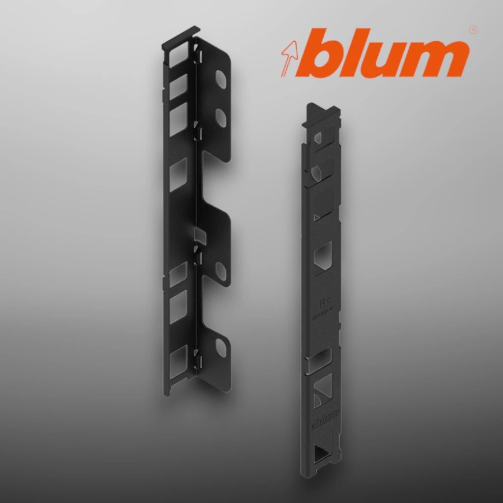 BLUM LEGRABOX držiak chrbta ZB7C000S je navrhnutý pre spoľahlivé upevnenie zadnej časti zásuviek v systéme LEGRABOX. Tento držiak je vhodný pre ľavú aj pravú stranu a je vyrobený z odolnej ocele s karbónovou čiernou matnou povrchovou úpravou. Je ideálny pre zásuvky s výškou C (193 mm).