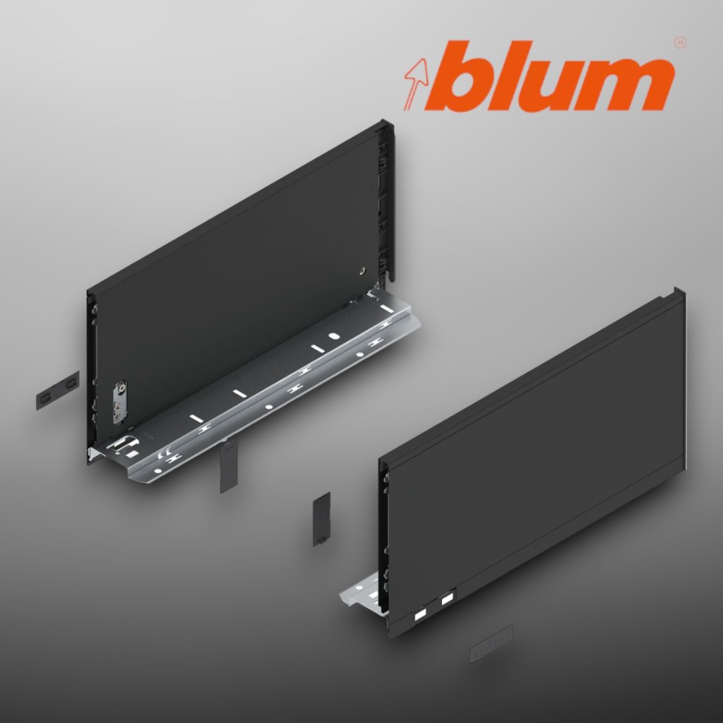 BLUM LEGRABOX súprava bokov 770C3502S v čiernej farbe je navrhnutá pre zásuvky systému LEGRABOX pure. Bočnice s výškou C (177 mm) a hladkým povrchom ponúkajú moderný a elegantný vzhľad. Vyrobené z ocele, poskytujú pevnosť a stabilitu zásuviek.