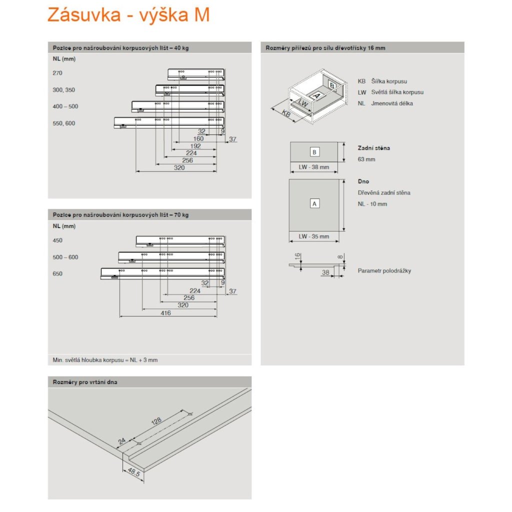 BLUM - LEGRABOX - súprava bokov - výška M - MD350 - čierna - 770M3502S