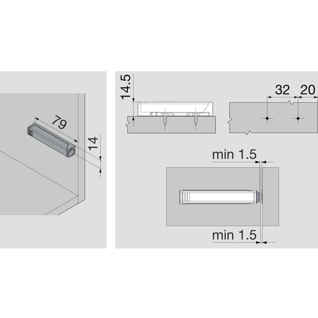 BLUM TIP-ON adaptér dlhý sivý umožňuje jednoduché a presné upevnenie mechanizmu, čo zaisťuje spoľahlivé fungovanie systému bezúchytkového otvárania dvierok. Vyrobený z kvalitného plastu v sivej farbe, adaptér esteticky ladí s moderným nábytkom. Montáž sa realizuje pomocou skrutiek do drevotriesky s priemerom 3,5 alebo 4 mm. Adaptér je dostupný aj v iných farebných prevedeniach, čo umožňuje jeho prispôsobenie dizajnu nábytku.