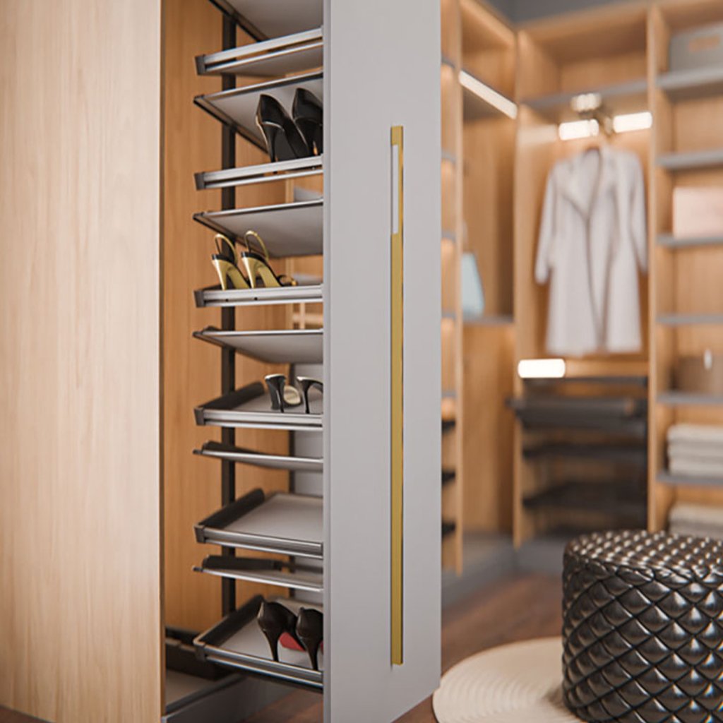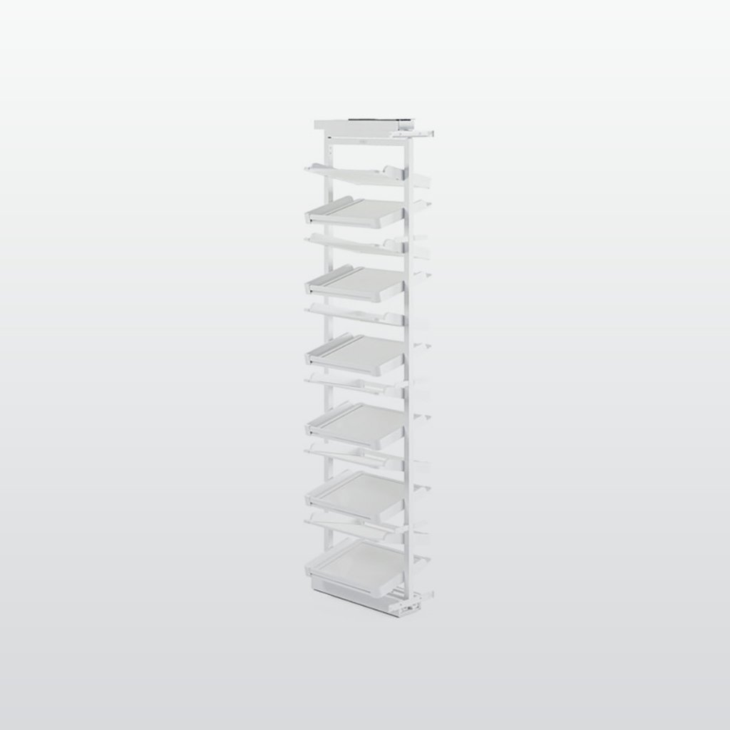 Mechanizmus výsuvu zabezpečuje jednoduchý prístup ku každej polici, čím výrazne zvyšuje komfort používania. Kôš je ideálny do šatníkových skríň a vstavaných riešení, kde je dôraz na praktickosť a prehľadnosť.