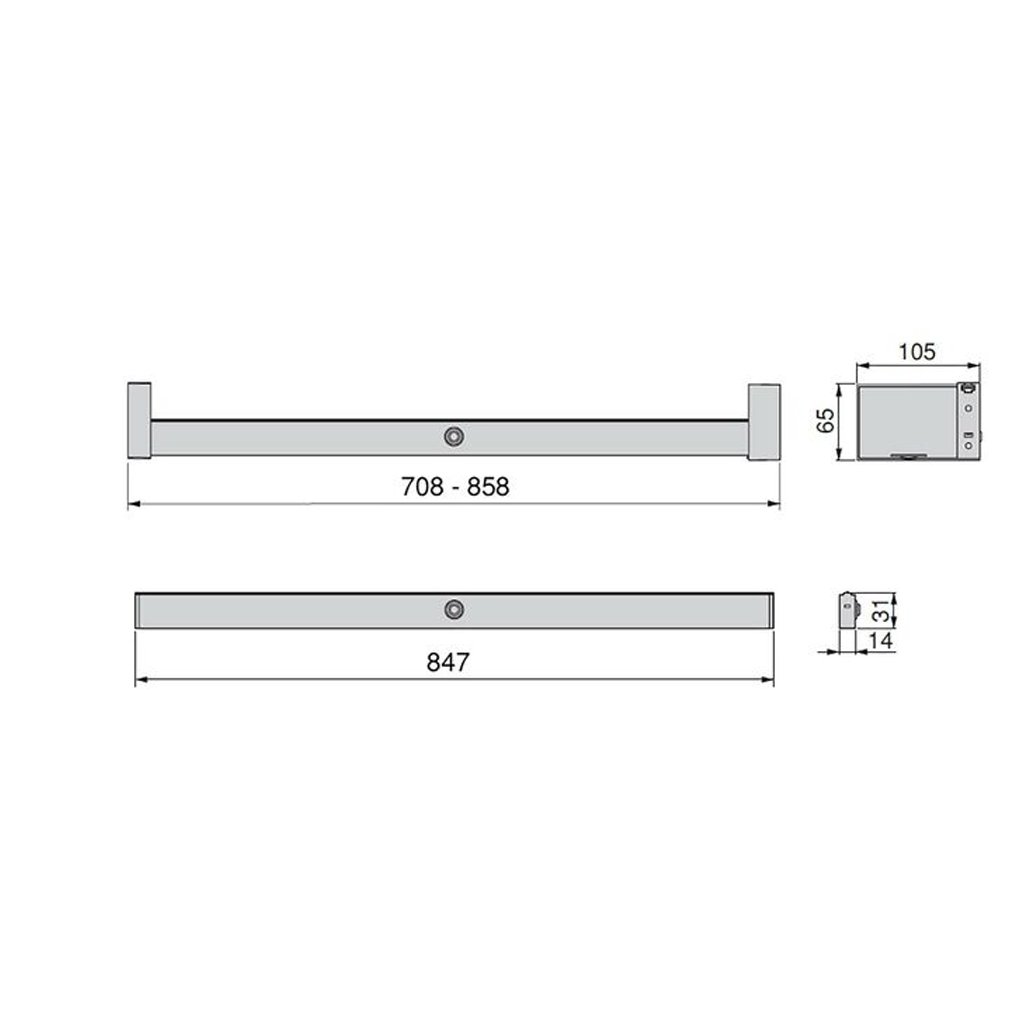 Castor LED - Vešiaková tyč, pohybový senzor, 858 mm, Sivá
