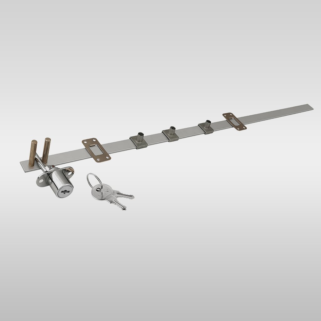 Mechanizmus funguje na princípe posuvnej tyče, ktorá je prepojená s lištou vybavenou blokáciami zásuviek. Po otočení kľúča o 180° sa všetky zásuvky súčasne uzamknú a nie je možné ich vysunúť. Vďaka tomu je zámok ideálny pre kancelárske kontajnery, skrine s viacerými zásuvkami a archivačný nábytok.
