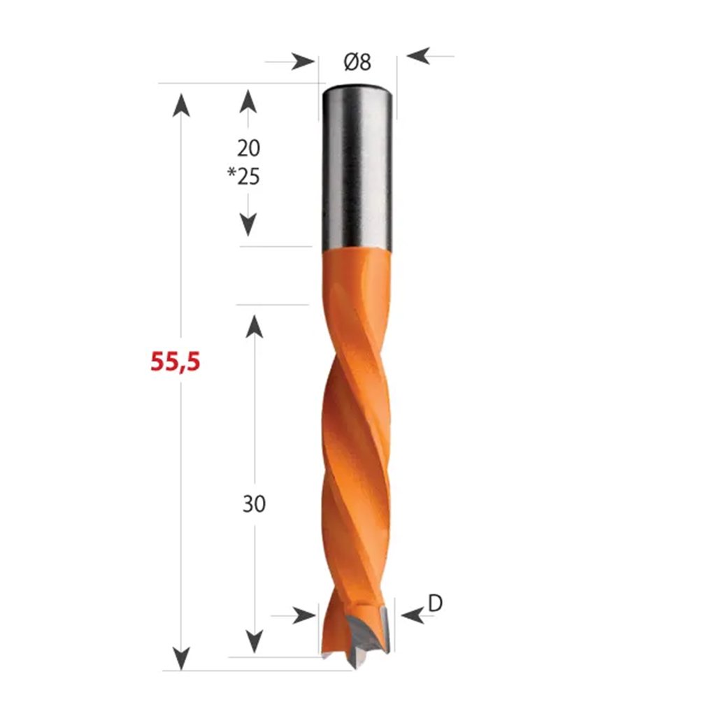 CMT - 306 Vrták kolíkovací nepriechodzí S8 L55,5 HW - D3x18 S=8x28 L55,5 P