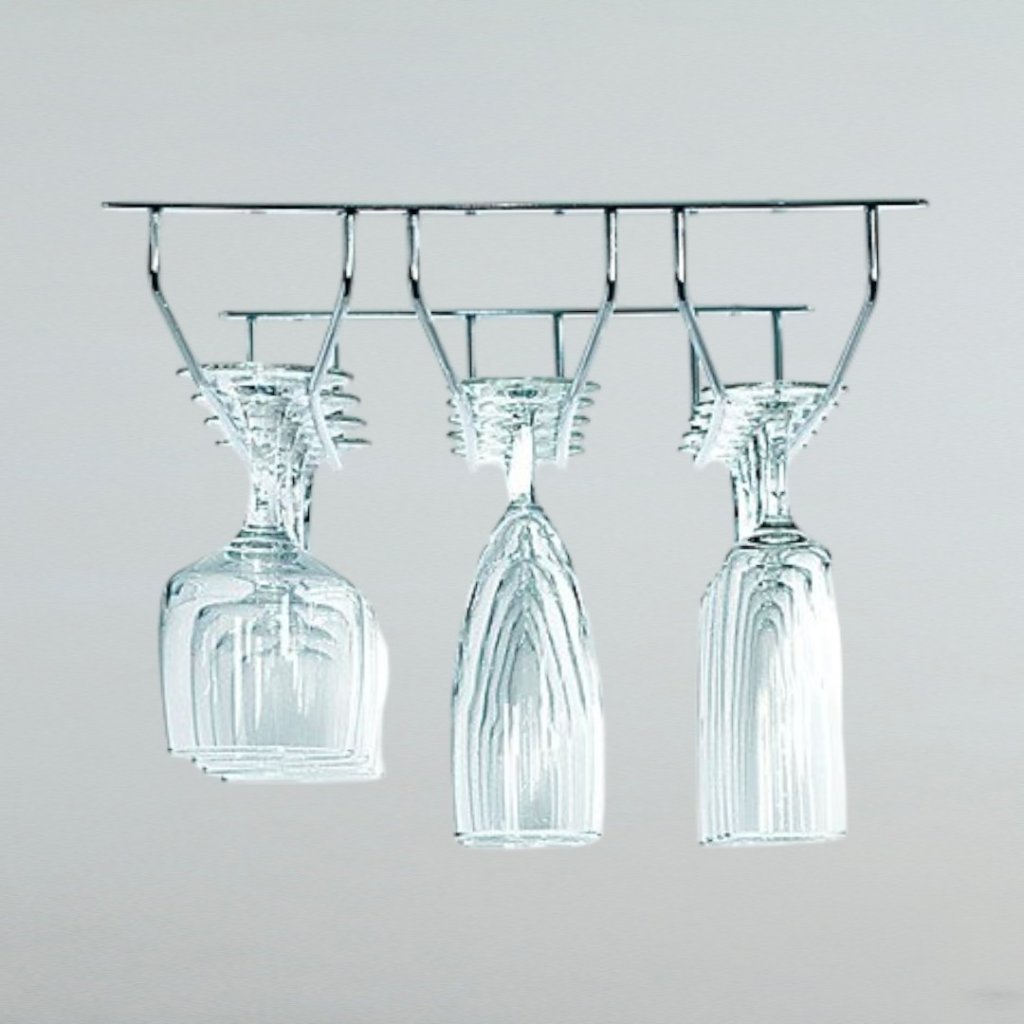 Tento trojradový závesný držiak na poháre je ideálnym riešením pre úsporné a elegantné uskladnenie pohárov nad kuchynskou linkou alebo barom. Je navrhnutý tak, aby poskytoval dostatok miesta pre viacero pohárov, čím udržiava poriadok a organizáciu vo vašej kuchyni alebo barovom priestore.