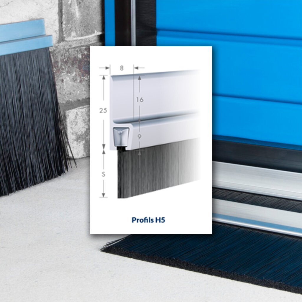 STRIBO PRO H5.25 je vysoko kvalitné riešenie určené na utesnenie dverí, brán, vrát či priemyselných konštrukcií. Produkt je vyrobený z eloxovaného hliníkového profilu a z odolného kartáča z UV stabilného polypropylénu v čiernej farbe, ktorý zaručuje dlhú životnosť aj pri náročnom používaní.