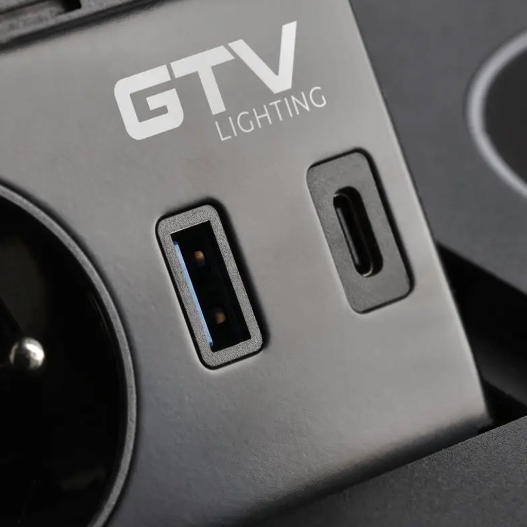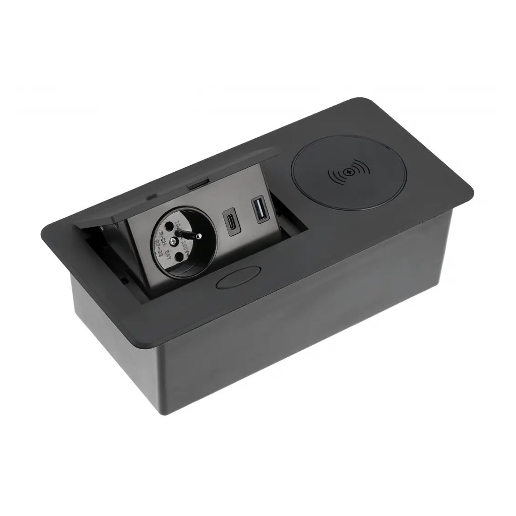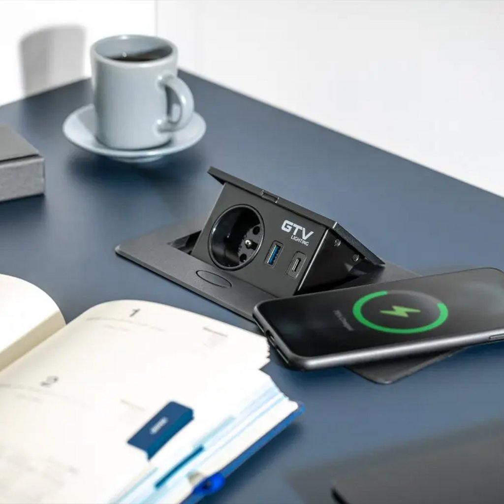 Elektrická zásuvka - Výklopná zásuvka GTV AVARO PLUS, 1 x 230V, USB A+C, 1 x indukčná 5W, Čierna