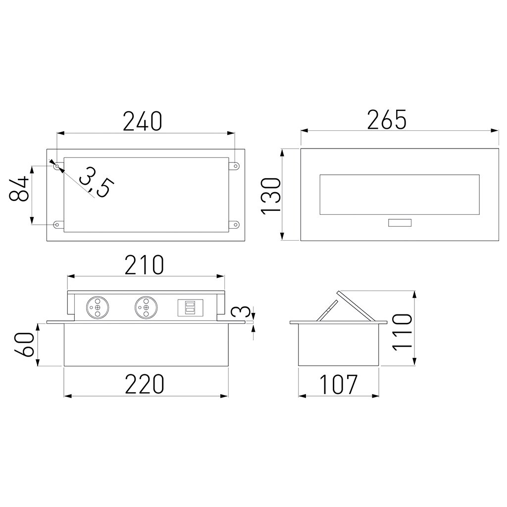 Elektrická zásuvka - Výklopná zásuvka GTV FLEXIPORT, 2 x 230V, 2 x USB, Čierna - VÝBEH