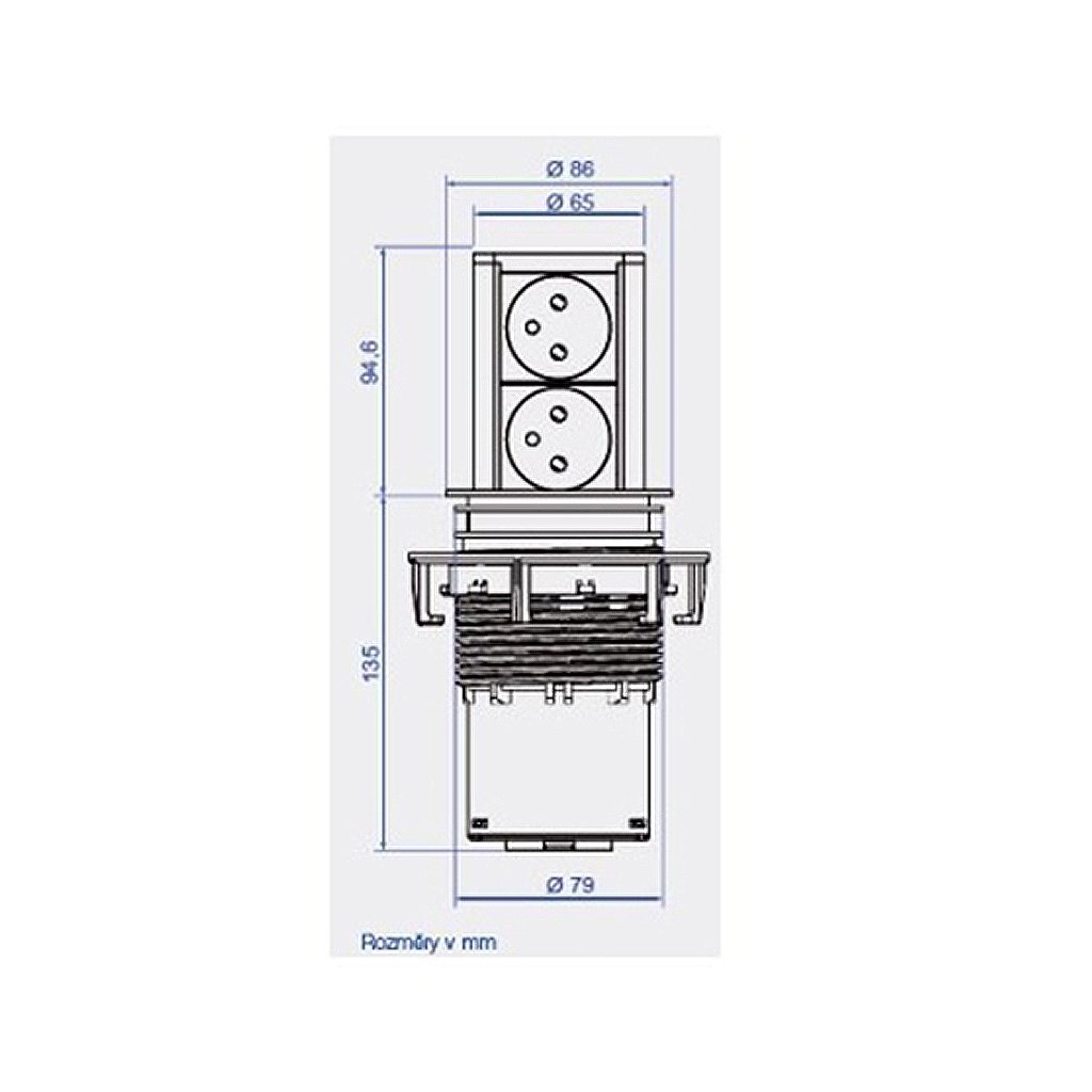 Elektrická zásuvka - Výsuvná zásuvka BACHMANN ELEVATOR, 2 x 230V, Čierna
