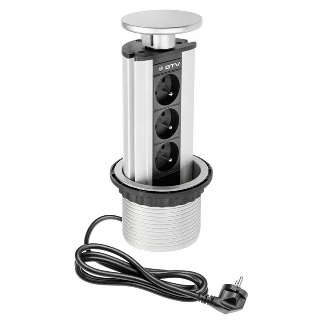 Elektrická zásuvka - Výsuvná zásuvka GTV, 100 mm, 3 x 230V, Strieborná