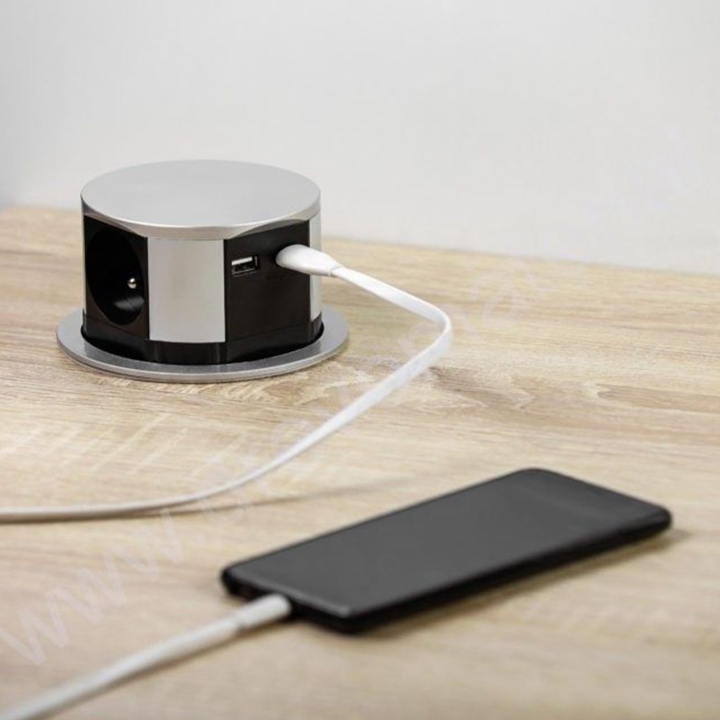 Elektrická zásuvka - Výsuvná zásuvka GTV COMFORT, 3 x 230V, 2 x USB, Hliník