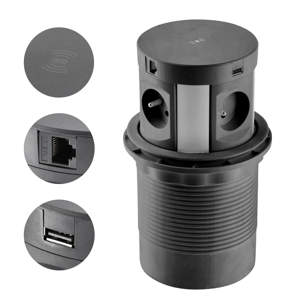 Elektrická zásuvka - Výsuvná zásuvka GTV COMFORT PLUS, 4 x 230V, 2 x USB, 2 x RJ45 port, 1 x Indukčn