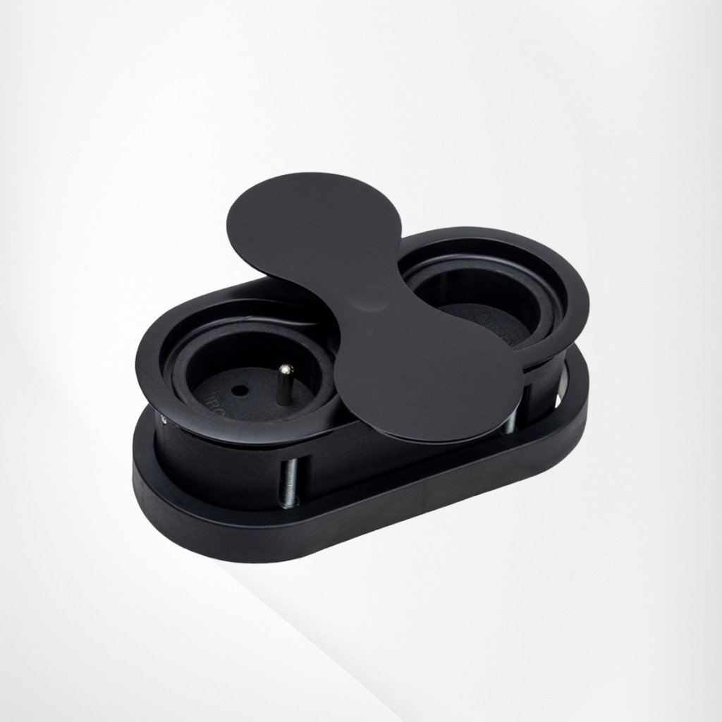 Elektrická zásuvka - Zásuvka dvojitá oválna, 2 x 230V, čierna matná