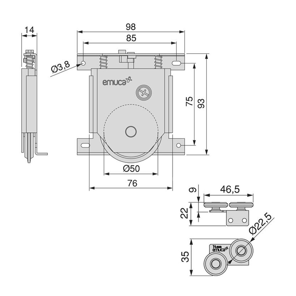 EMUCA - Placard Kit 74 - Súprava montážnych dielov koleso Ø50 pre jedny posuvné dvere