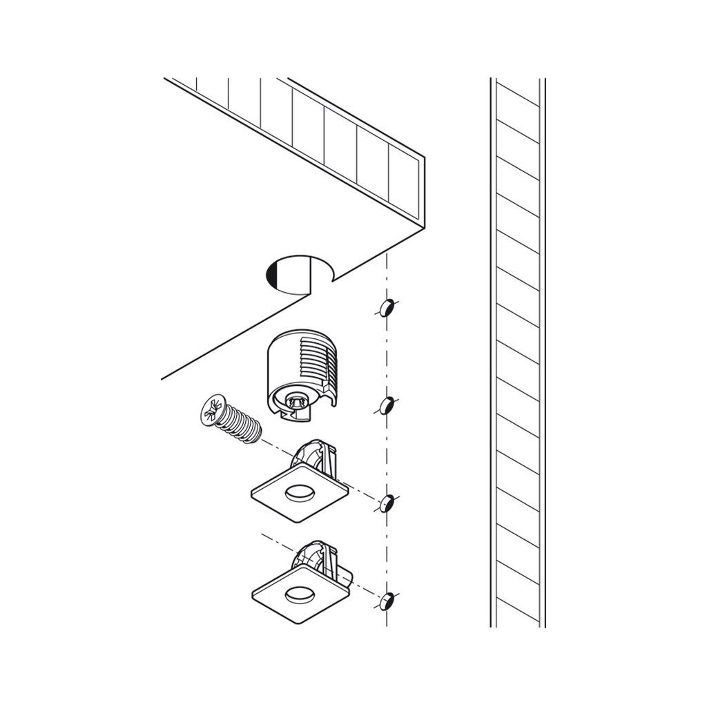 Spojovacie kovanie Tab 18 je ideálne riešenie pre dodatočné zabezpečenie políc proti prevráteniu, pričom jeho montáž je rýchla a jednoduchá.