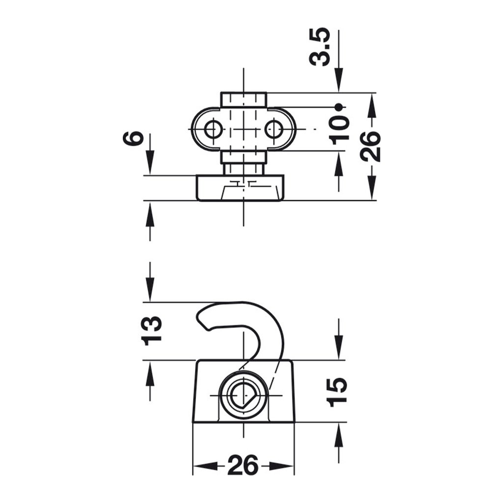 Spoľahlivá háková záskočka určená na uchytenie profilovej tyče v systémoch trojcestných zámkov. Vďaka možnosti priskrutkovania zabezpečuje pevnú a presnú montáž na požadované miesto.