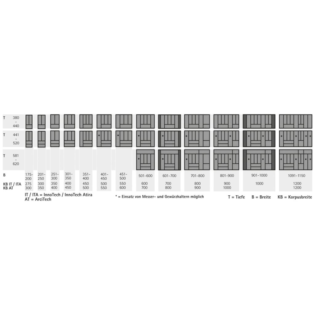 Hettich-OrgaTray 440 príborník antracit, hľbka 380 - 440 mm šírka