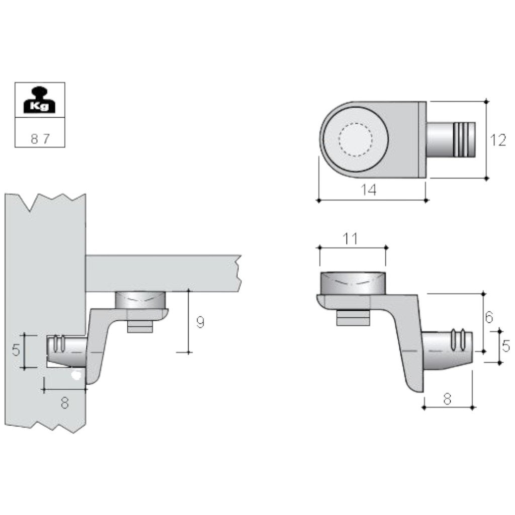 Hettich - Policová podperka - Sekura 8 - C na sklo