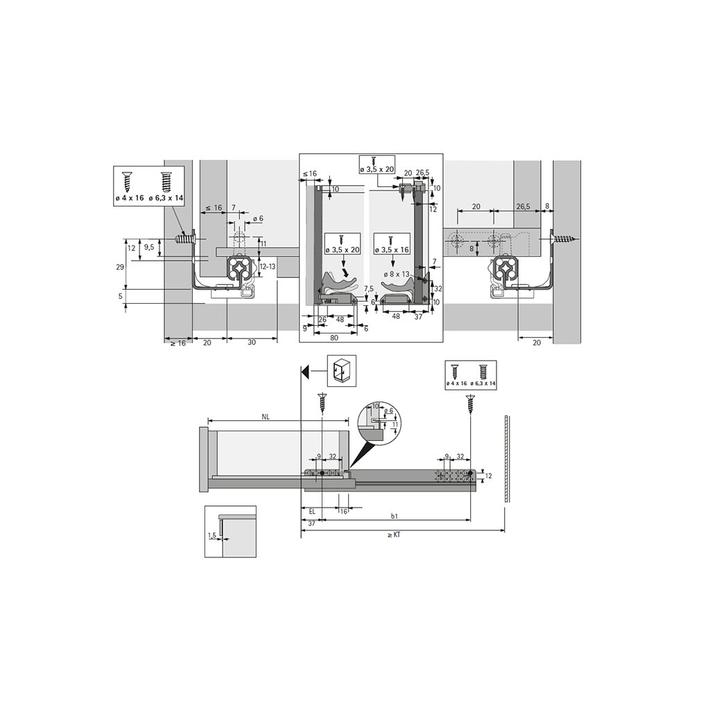 - Pro bezpečné spojení výsuvu Quadro a dřevěné zásuvky, bez použití nářadí