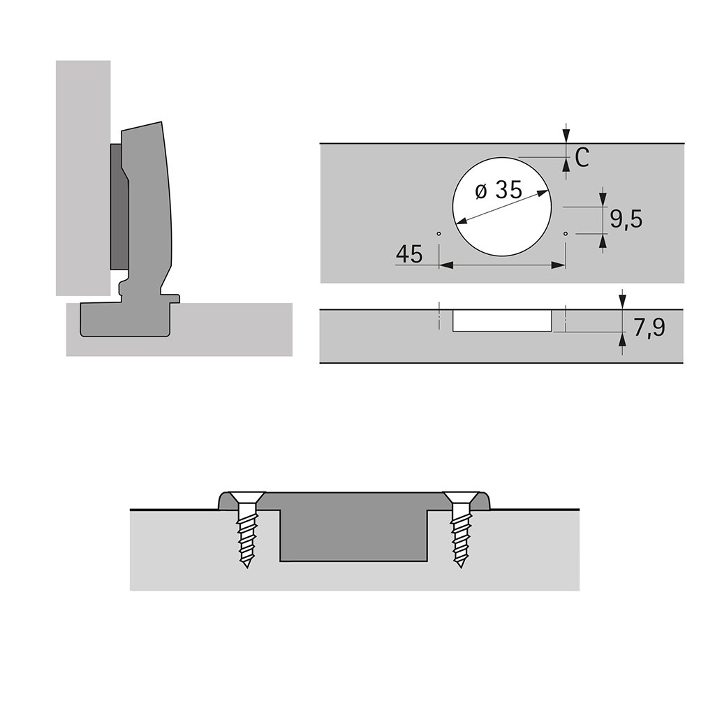 Záves je určený pre štandardné naložené dvere s hrúbkou od 15 do 24 mm a umožňuje uhol otvorenia 110°, čo poskytuje dobrý prístup do skrinky. Vďaka presnému 3D nastaveniu (naloženie, hĺbka, výška) je možné dvere jednoducho doladiť pre dokonalé lícovanie. Montáž je riešená klasickým priskrutkovaním pomocou systému TH 52.