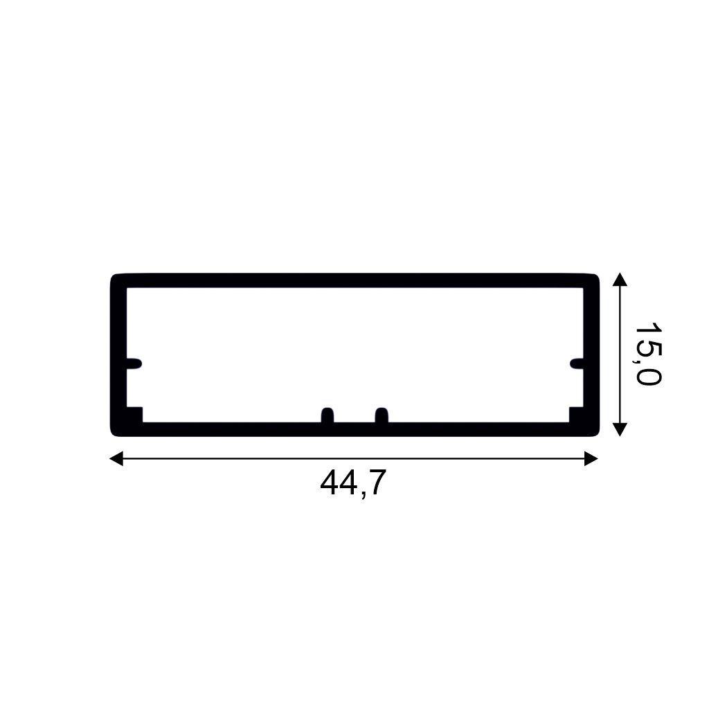 - Rozmer profilu: 15 mm x 44,7 mm, čo poskytuje tenký a elegantný vzhľad bez kompromisov na pevnosti.