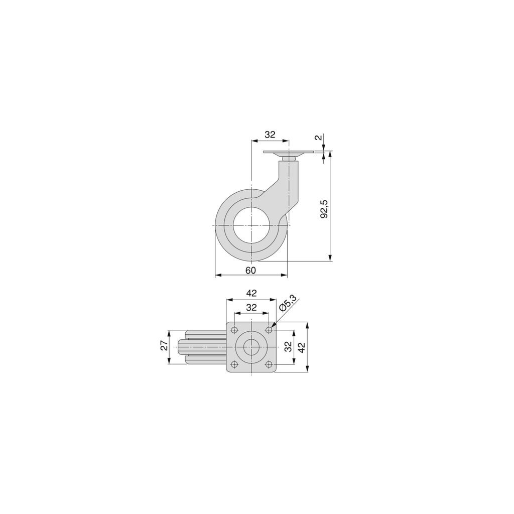 Hole 2 | Nábytkové kolieska, 60 mm, sivé, sada 4 ks
