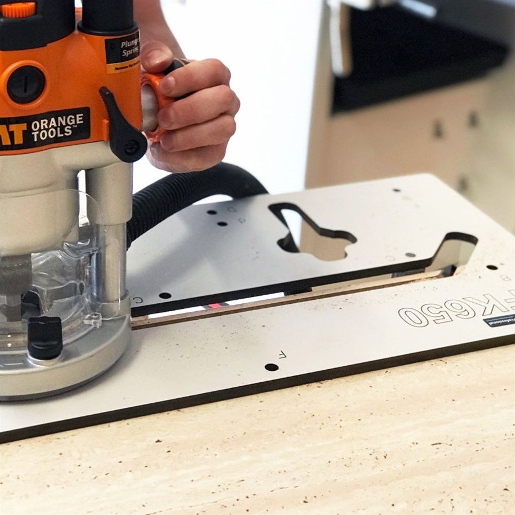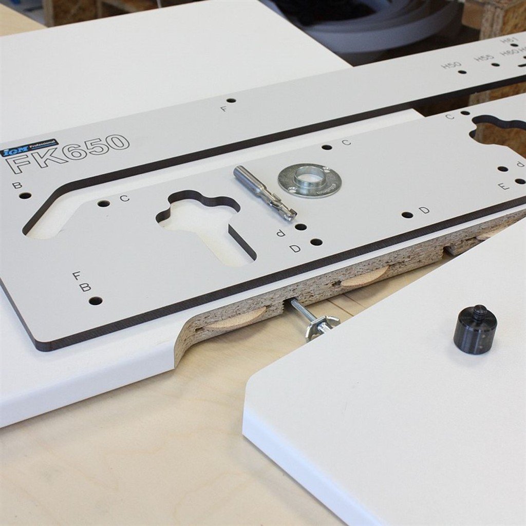 Šablóna IGM FK650 je určená na presné frézovanie spojov kuchynských pracovných dosiek pomocou všetkých typov horných frézok. Premyslený systém jasného značenia jednotlivých krokov výrazne zjednodušuje prácu, skracuje čas montáže a znižuje riziko chýb.