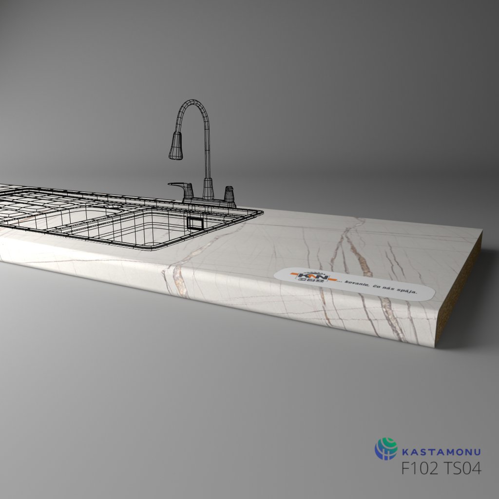 KASTAMONU - Pracovná doska TECHNOTOP - F102 TS04 - 4100 x 635 x 38 - Kavala Marble
