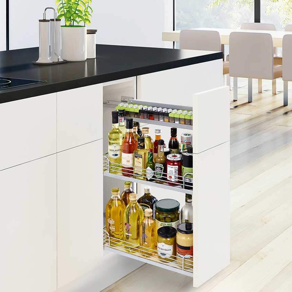 Sada obsahuje: rám, výsuv s tlmením, držiaky čela pre naloženie dverí 90 ° - 2ks. Posuvný rám - pravý, pre spodné skrine, sivý.