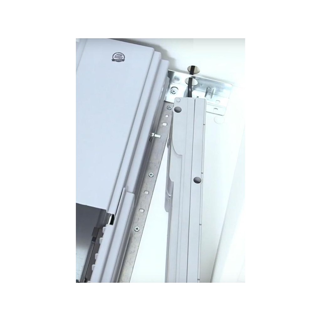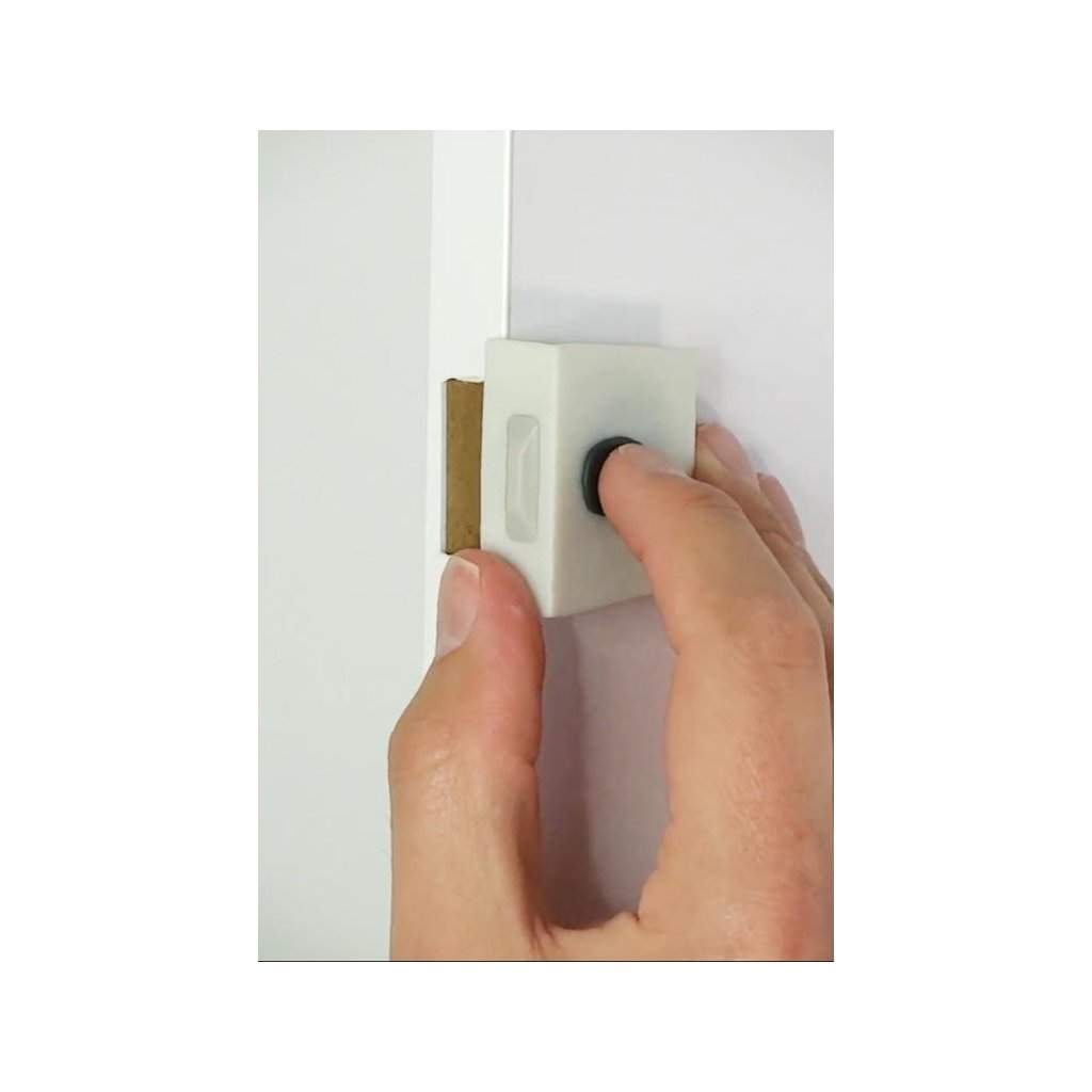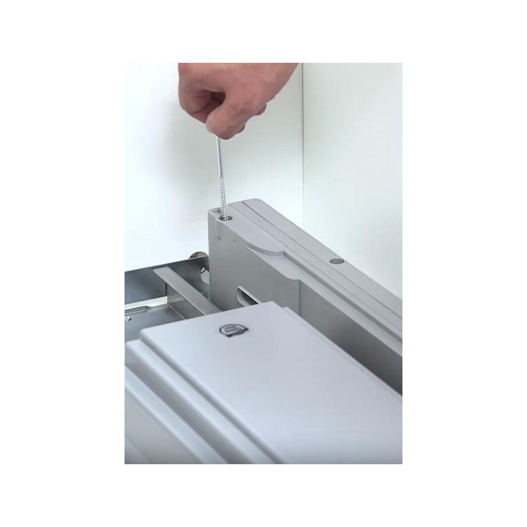 Druhá časť súpravy - snímač, najskôr namontujte adaptér snímača priamo na vnútornú stranu tela ľavej skrinky vo výške 1100 mm, meranej od podlahy (odporúčané výrobcom), a potom k nej pripevnite snímač, alebo alternatívne namontujte snímač bez adaptéra do predtým vyfrézovaného otvor v prednej časti skrinky. Nakoniec synchronizujte zariadenie.