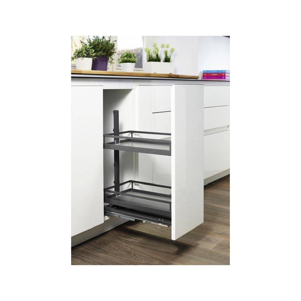 Junior je mechanizmus pre nízku pultovú skrinku šírky prednej strany 150, 300 a 400 mm povrchovou úpravou antracit. Aby bol systém kompletný a pripravený na použitie, je potrebné objednať si samostatne mechanizmus a koše. Rôznorodá kombinácia políc vám umožní prispôsobiť ich vlastným koncepciám a potrebám.