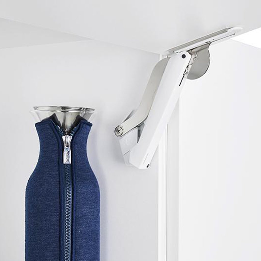 FREEspace Typ C s funkciou push-to-open je inovatívny nábytkový výťah navrhnutý pre skrinky bez úchytiek. Stačí krátke stlačenie prednej plochy, aby sa dvierka hladko zdvihli rukou. Zatváranie prebieha rovnako jednoducho a plynulo – miernym zatlačením na prednú časť skrinky. Tento mechanizmus umožňuje zdvihnutie prednej časti nahor, čím poskytuje voľný priestor nad hlavou a ľahký prístup do vnútra skrinky.