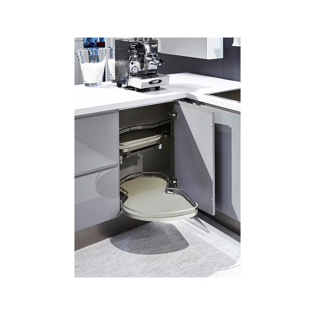 Sada políc Arena CLASSIC šedých pre riešenie spodnej rohovej skrinky (tzv. slepého rohu) LeMans II. Dno s Anti-slip nesmekovou povrchovou úpravou v šedom prevedení. K LeMans II je možné pridať externý tlmič ktorý policu dotiahne, pri zavretí utlmí a zabráni rázu.Montáž tlmiča na vonkajšie rameno.