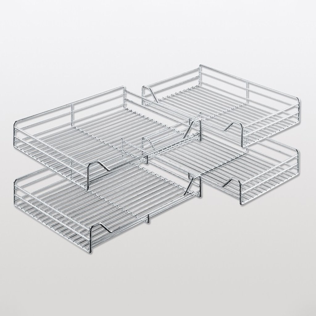Sada košov Magic Corner celodrôtených sivých košíkov.