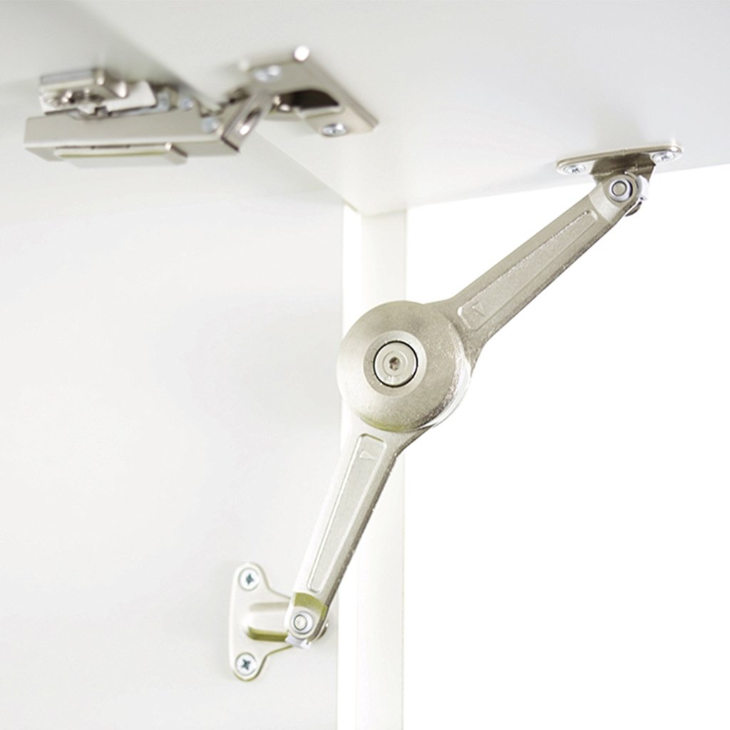 Polohovateľná sklopná klapka Kesseboehmer Duo umožňuje flexibilné otváranie dvierok s uhlom 75°, 90° alebo 110°. Tento systém je vhodný pre horné aj spodné vyklápanie dvierok, pričom prepolohovanie ramien zabezpečuje univerzálnosť. Robustná konštrukcia a spoľahlivý dizajn umožňujú jednoduché a plynulé ovládanie.