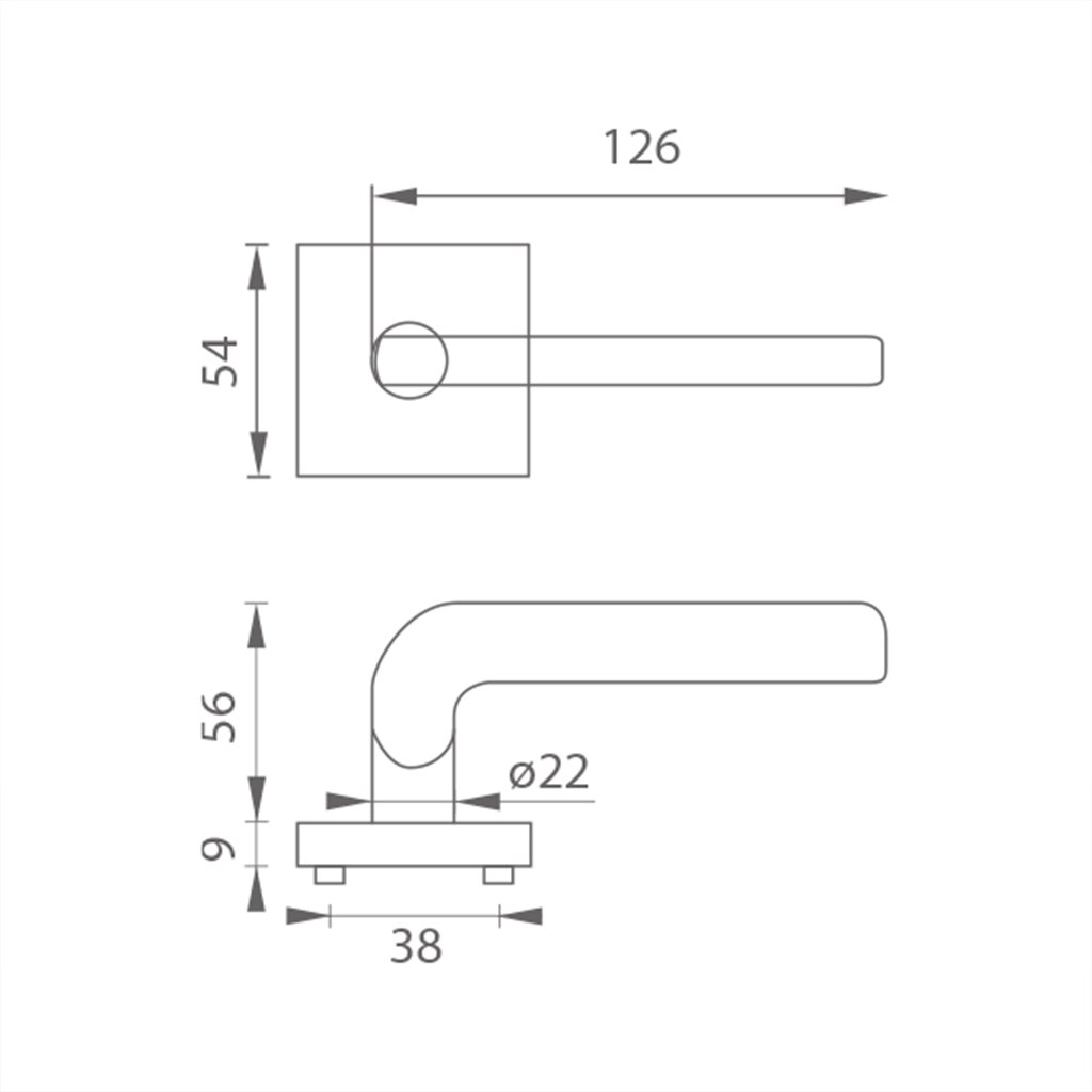 • Tvar rozety: hranatá – 54 × 54 mm, hrúbka 9 mm