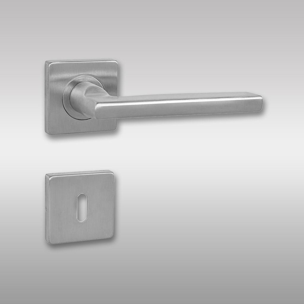MP DANIELA HR je moderná rozetová kľučka na interiérové dvere s hranatou rozetou, ktorá vyniká svojím elegantným dizajnom a vysokou odolnosťou. Vyrobená je z kvalitnej nehrdzavejúcej ocele (nerez) s matnou povrchovou úpravou, ktorá zabezpečuje farebnú stálosť a dlhú životnosť aj pri častom používaní.