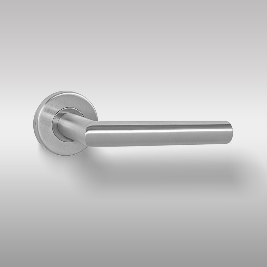 Kľučka MP FAVORIT R – nerez matná, bez rozety – Moderná a odolná kľučka z vysokokvalitnej nehrdzavejúcej ocele (nerez) s matnou povrchovou úpravou. Rozetová kľučka na interiérové dvere s priemerom rozety 54 mm a hrúbkou 9 mm. Povrch je farebne stabilný a vysoko odolný voči opotrebeniu. Konštrukcia obsahuje púzdro z pozinkovanej ocele, vratný mechanizmus, kovové výstupky a nerezovú krytku rozety.