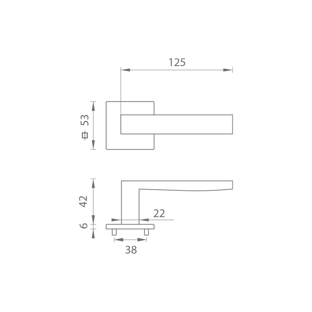 Moderná rozetová kľučka na interiérové dvere s hranatou rozetou v prevedení čierna matná je vyrobená odlievaním zo zliatiny zinku a hliníka a následne povrchovo upravená galvanizáciou. Vďaka tomu je odolná proti korózii a zachováva si svoj elegantný vzhľad aj pri dlhodobom používaní. Kovanie je testované na 100 000 cyklov, čo zaručuje jeho spoľahlivosť.