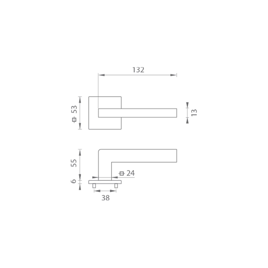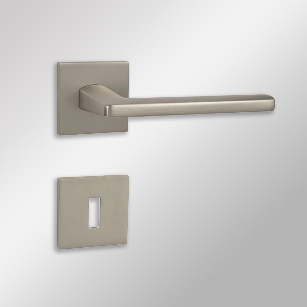 MP - PRIMA HR SQ6 je rozetová kľučka s hranatou rozetou, navrhnutá pre interiérové dvere.