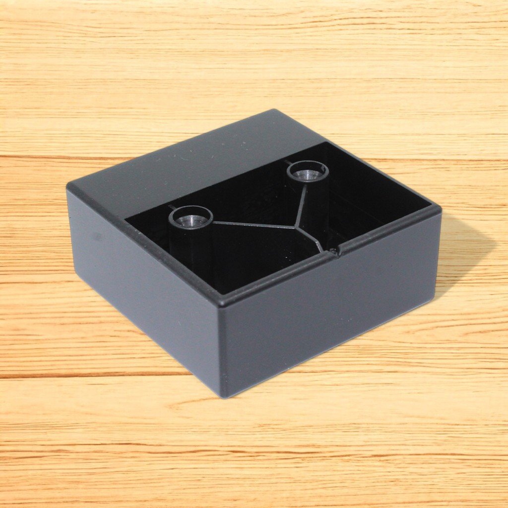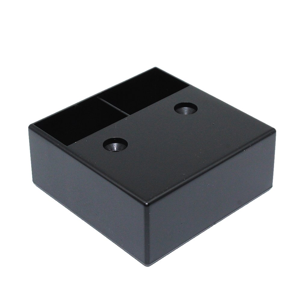 Štvorcový plastový klzák, určený na stabilizáciu nábytku, s matnou čiernou povrchovou úpravou.